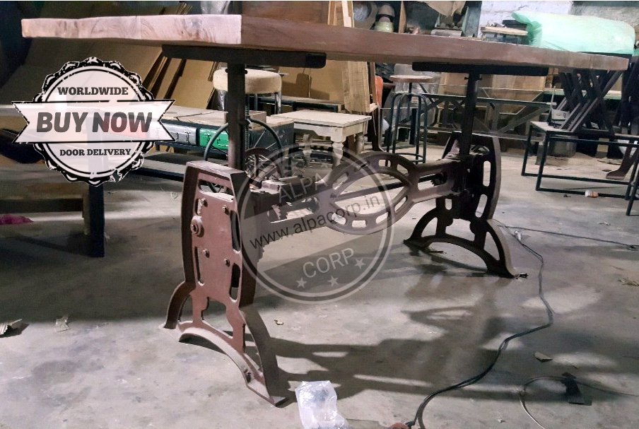 Cast Iron Adjustable Height Crank Table